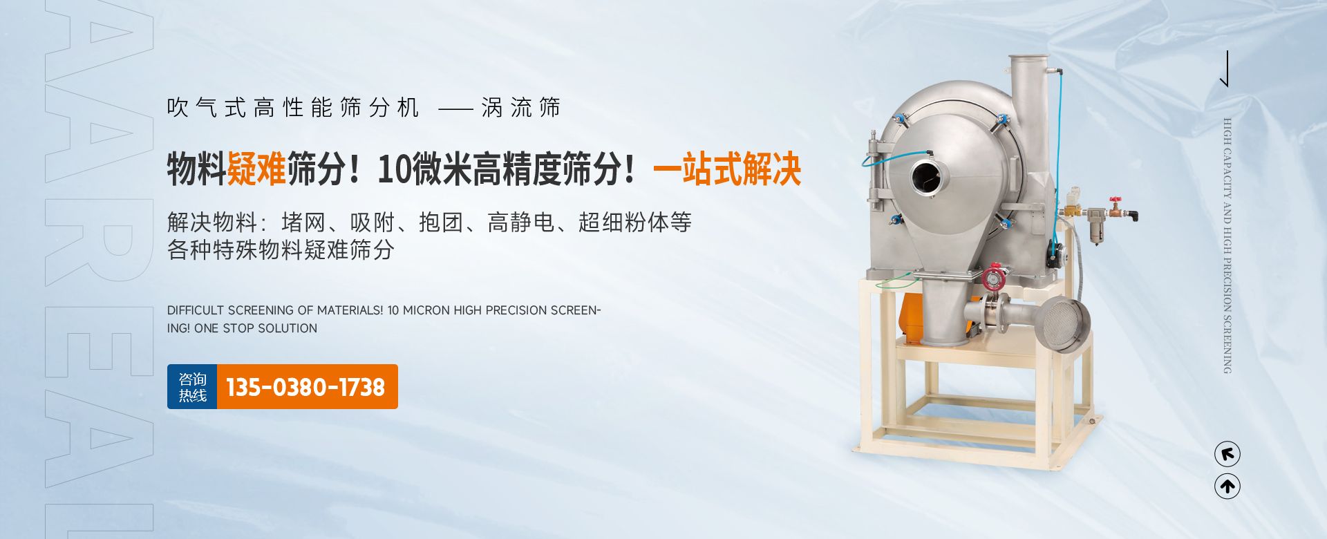 阿 瑞 爾(AAREAL)? 是從事篩分·過濾設(shè)備設(shè)計(jì)和制造的高新技術(shù)企業(yè),擁有先進(jìn)的生產(chǎn)設(shè)備、粉體篩分分析實(shí)驗(yàn)室,在中國廣州市設(shè)辦事處。祝賀:新鄉(xiāng)市超大產(chǎn)能精細(xì)篩分技術(shù)工程中心在阿瑞爾(AAREAL)成立!!!在線大產(chǎn)能篩分和在線動(dòng)態(tài)過濾是阿 瑞 爾(AAREAL)?的產(chǎn)品特點(diǎn)■ 在線大產(chǎn)能篩分,突破了傳統(tǒng)篩分觀念,工業(yè)化篩分,實(shí)現(xiàn)大產(chǎn)能、高能效篩分。以低故障率、低停機(jī)率、低使用成本、高產(chǎn)能、高精度、高能效為您帶來巨大意外收益。■ 阿瑞爾(AAREAL)擁有的回轉(zhuǎn)篩分技術(shù),擁有的近百種篩分解決方案及上千種物料的篩分經(jīng)驗(yàn),會(huì)給您展現(xiàn)全新的篩分設(shè)備,幫您實(shí)現(xiàn)大產(chǎn)能篩分 高精度篩分 疑難篩分。■ 阿瑞爾(AAREAL)的品質(zhì)保證:阿 瑞 爾(AAREAL)? 是高品質(zhì)篩分設(shè)備制造商高品質(zhì)是阿 瑞 爾(AAREAL)? 質(zhì)量準(zhǔn)則。優(yōu)品設(shè)備 合理篩分是阿 瑞 爾(AAREAL)?回報(bào)客戶的驗(yàn)收標(biāo)準(zhǔn)。——我們不但擁有先進(jìn)的生產(chǎn)設(shè)備,而且對于每一道工序,每一個(gè)細(xì)節(jié),我們都要精工細(xì)作。對于客戶的每一個(gè)細(xì)微的問題,我們都要認(rèn)真解決。——精心制作和用心服務(wù)是我們對客戶的責(zé)任。阿瑞爾(AAREAL)是您成功道路上值得信賴的、合作伙伴,以良好的質(zhì)量、經(jīng)驗(yàn)和服務(wù)享譽(yù)多個(gè)國家,確保您安心地選擇每一件產(chǎn)品,阿瑞爾(AAREAL)竭誠與國內(nèi)外商家雙贏合作,共同發(fā)展,共創(chuàng)輝煌!阿瑞爾(AAREAL)——您正確的選擇。